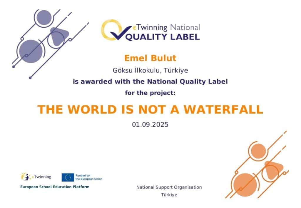 Bu projeyle kalite etiketi alan okulumuz öğretmenlerinden Emel BULUT'u tebrik ederiz.